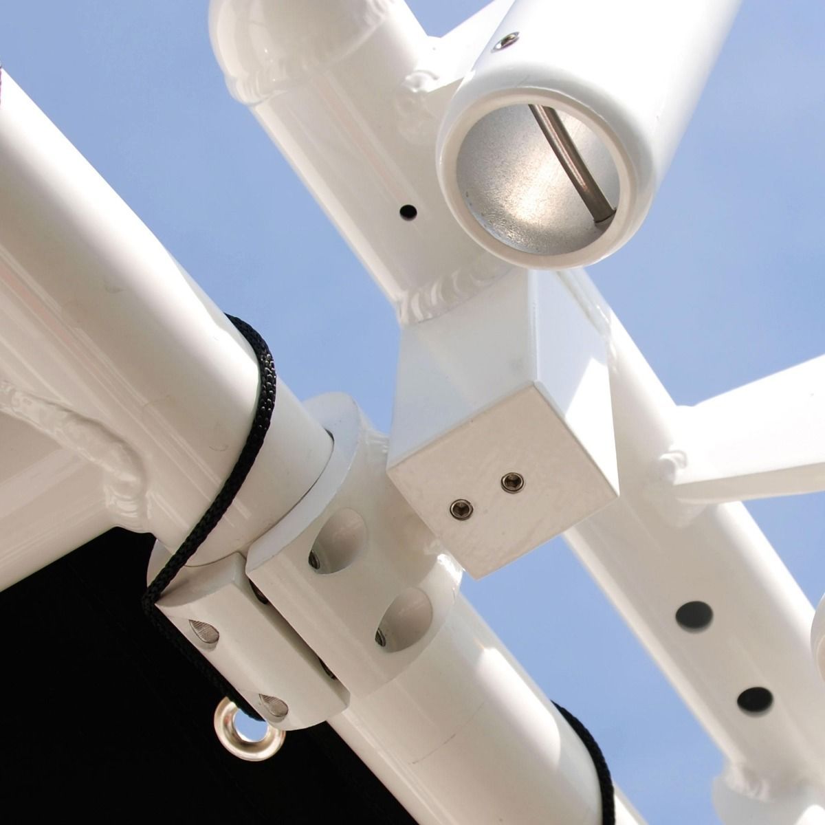 Der Rahmen bietet zudem Platz für die direkte Montage von Navigations- und Spreizlichtern. Diese Version ist für zusätzlichen Schutz vor Meeresumwelt eloxiert; eine weiß pulverbeschichtete Version ist ebenfalls erhältlich. Hinweis: Zur Aufbewahrung unbenutzter Ruten; nicht zum Schleppangeln oder Werfen von Leinen geeignet.