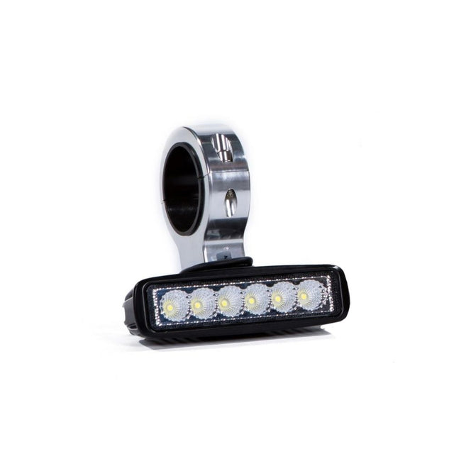 Diese Leuchte verwendet sechs 5-Watt-LEDs (insgesamt 30 Watt) und kombiniert einen Spot für die Ferne und einen Fluter für die Breite. Die Nennlichtleistung von 2880 Lumen und die Farbtemperatur von 6000 K sorgen für helles Licht. Das 10–30-V-Gleichstromnetzteil ist sowohl für 12-V- als auch für 24-V-Systeme geeignet. Die Stromaufnahme beträgt 2,04 A bei 12 V und 1,04 A bei 24 V. Dank universeller Einsätze lässt sich das Gehäuse für eine saubere Platzierung um Rohre von 4,13 bis 6,35 cm klemmen.